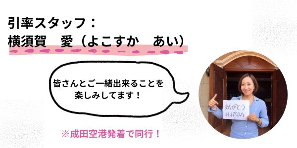 成田空港出発から成田空港帰国まで弊社スタッフが同行します。現地事務所もあるので何かあった場合も安心です。